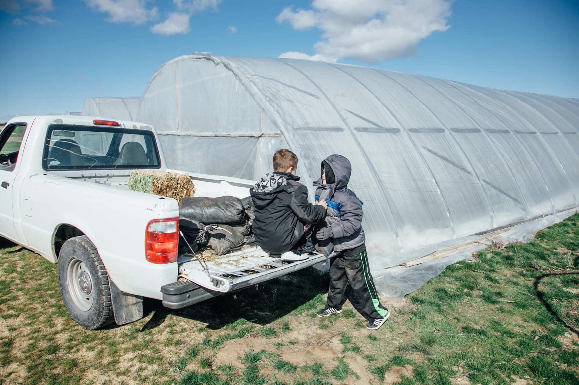 As quickly as the greenhouses fell, our community rose up to help support us. Neighbors visited to help clear the wreckage, the Boise Farmers Market started a fundraiser to pay for new materials, and hosted volunteer days at the farm to recover the standing structures and clear away the wreckage. Volunteers transplanted about 2,500 seedlings to help us make up for lost time in the first year. Local restaurants fed the work crews who braved spring showers, cold, and even snow storms to help us come back before the growing season would begin.