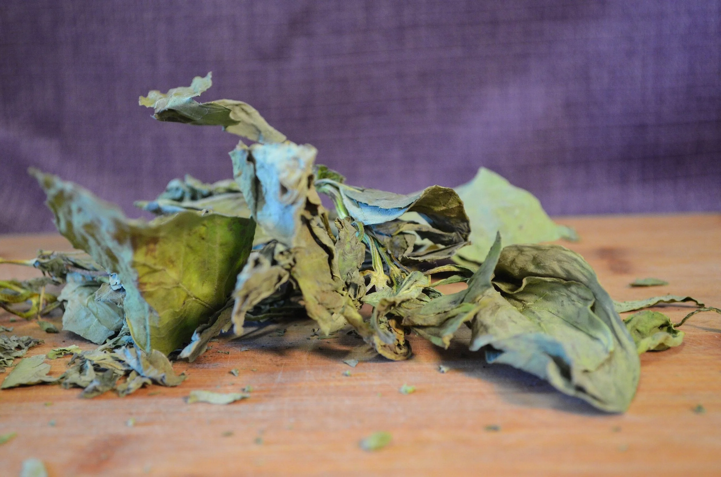 Dried Organic Genovese Basil hand harvested and grown by Purple Sage Farms