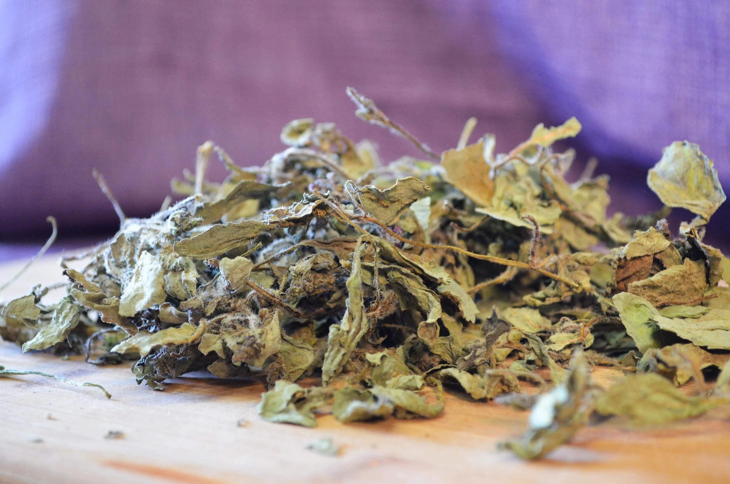 Dried Organic Stinging Nettle hand harvested and grown by Purple Sage Farms